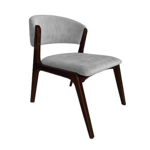 CARACTERÍSTICAS Tipo: Cadeira Modelo: Kethellen Tecido: Veludo Cor do Tecido: Cinza Cor da Base: Castanho