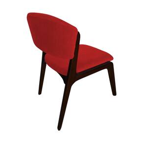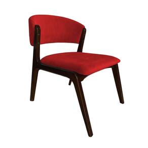 CARACTERÍSTICAS Tipo: Cadeira Modelo: Kethellen Tecido: Veludo Cor do Tecido: Vermelho Cor da Base: Castanho