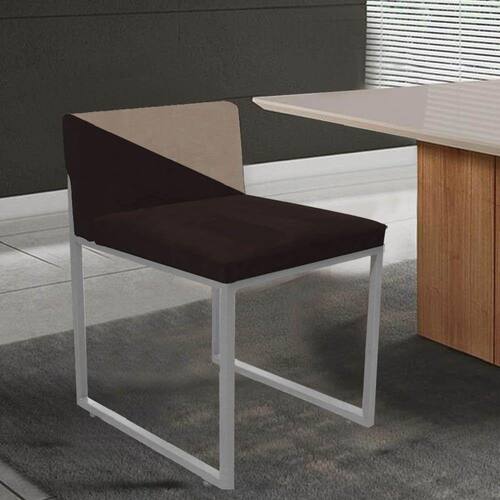 Cadeira Office Lee Duo Sala De Jantar Industrial Ferro Prata Corino Marrom E Bege - Ahazzo Móveis Cor Bege