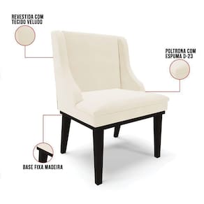 Experimente deixar sua decoração com bom gosto e qualidade com a cadeira de jantar Liz. É perfeita para você não abre mão de qualidade e requinte na hora das refeições e confraternizações com amigos e familiares. Produzida com Base Fixa Madeira Preto que suportam até 120 kg, estrutura ecologicamente correta de madeira de eucalipto e pinus, oferece durabilidade e qualidade ao móvel, seu estofamento é com espuma de densidade D-23, revestido em tecido Veludo no tom Bege. Sofisticada e excelente para deixar sua sala de jantar mais aconchegante. Compre sem sair de casa!