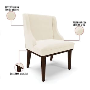 Experimente deixar sua decoração com bom gosto e qualidade com a cadeira de jantar Liz. É perfeita para você não abre mão de qualidade e requinte na hora das refeições e confraternizações com amigos e familiares. Produzida com Base Fixa Madeira Tabaco que suportam até 120 kg, estrutura ecologicamente correta de madeira de eucalipto e pinus, oferece durabilidade e qualidade ao móvel, seu estofamento é com espuma de densidade D-23, revestido em tecido Veludo no tom Bege. Sofisticada e excelente para deixar sua sala de jantar mais aconchegante. Compre sem sair de casa!