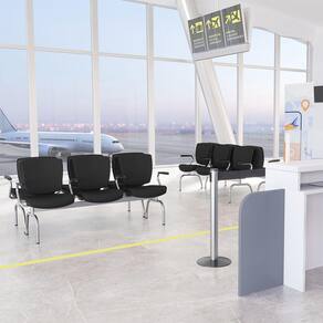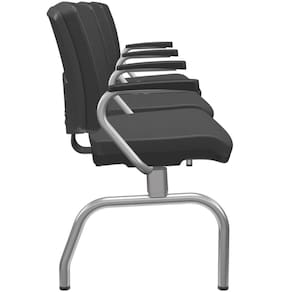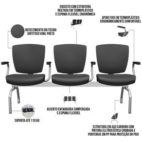 Cadeira Longarina 3 Lugares Aeroporto Recepção Cromado Baixa Flexi P03 Vinil Preto - Lyam
