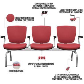Cadeira longarina, encosto com estrutura injetada em termoplástico.