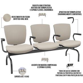 Cadeira longarina, encosto com estrutura injetada em termoplástico.