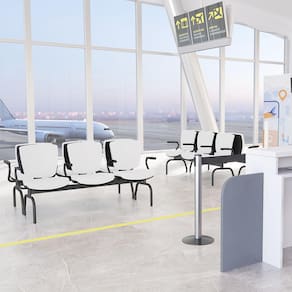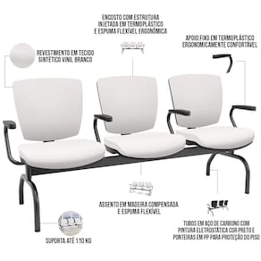 Cadeira Longarina 3 Lugares Aeroporto Recepção Preto Baixa Flexi P03 Vinil Branco - Lyam