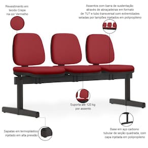 Proporcione um ambiente de espera agradável e profissional com essa longarina 3 lugares, pois é a solução perfeita para otimizar seus espaços e oferecer um design elegante e atemporal. Fabricada com materiais resistentes e duráveis, essa longarina é ideal para compor recepções, salas de espera e postos de trabalho operativos, já que garante longa vida útil e um excelente custo-benefício, além de oferecer o máximo conforto e bem-estar para seus clientes com o assento e encosto estofados.