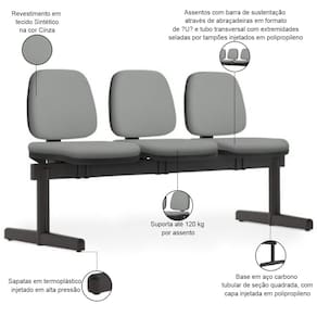 Proporcione um ambiente de espera agradável e profissional com essa longarina 3 lugares, pois é a solução perfeita para otimizar seus espaços e oferecer um design elegante e atemporal. Fabricada com materiais resistentes e duráveis, essa longarina é ideal para compor recepções, salas de espera e postos de trabalho operativos, já que garante longa vida útil e um excelente custo-benefício, além de oferecer o máximo conforto e bem-estar para seus clientes com o assento e encosto estofados.