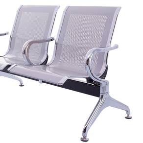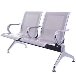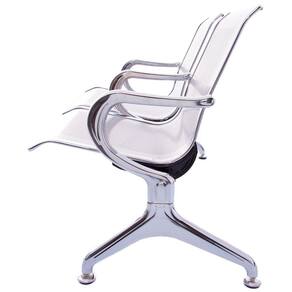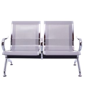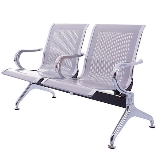 A Cadeira Longarina 2 lugares é toda em aço, pés e braços cromados e acabamento nas bordas também em aço cromado.