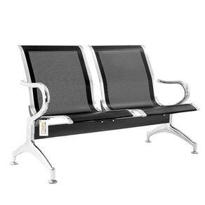 Cadeira tipo longarina com assentos estofados e base fixa;