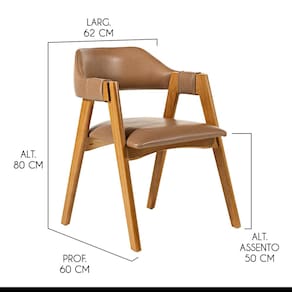 Você está buscando uma cadeira que seja o destaque do seu ambiente? Então, você precisa conhecer a Cadeira Lua! Com um design moderno e elegante, ela é capaz de conceder maior conforto a qualquer espaço. Além de sua beleza estética, a Cadeira Lua é incrivelmente versátil e pode ser usada em diversos ambientes da sua casa, trazendo um toque único a cada um deles. Produzida com madeira maciça sustentável de alta qualidade e resistência, você pode ter certeza de que esta cadeira durará por muitos anos. Não perca mais tempo procurando a cadeira perfeita. Então não perca mais tempo e venha conhecer nosso catálogo e deixar sua casa mais completa e cheia de estilo com todos os produtos da Rio Madeira Interiores. CARACTERÍSTICAS TÉCNICAS: - Produzido em Madeira Maciça Sustentável - Acabamento em Verniz na cor Castanho - Assento Estofado Preenchido com Espuma D23 - Encosto Estofado Preenchido com Espuma D18 - Revestimento Impermeável em Courino Caramelo L85 - Cadeira Entregue Semi Montada INFORMAÇÕES TÉCNICAS: Altura Total: 80 cm Altura Chão até Braço: 69 cm Altura Chão até Assento: 50 cm Altura Encosto: 32 cm Largura Total: 62 cm Largura do Assento: 55 cm Profundidade Total: 60 cm Profundidade Assento: 53 cm Peso: 8 kg INFORMAÇÕES ADICIONAIS: Garantia para defeitos de fabricação conforme Código de Defesa do Consumidor. - Produto em madeira maciça natural, podendo ocorrer variação no tom ou cor da madeira. - As imagens ambientadas são meramente ilustrativas e podem apresentar itens que não compõe o produto, as cores do produto podem variar de acordo com o monitor, a iluminação do ambiente ou sua percepção visual. - Limpeza: Deve ser feita com pano macio e seco ou levemente umedecido com água e sabão neutro. Não devem ser utilizados abrasivos. Marca: Rio Madeira Interiores