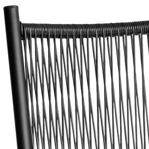 Fabricada com estrutura em aço carbono e acabamento em pintura eletrostática preta, essa cadeira combina resistência e estética moderna. O assento estofado com espuma D28 proporciona conforto mesmo em longos períodos de uso, enquanto o encosto em fibra sintética tramada artesanalmente garante estilo e ventilação.