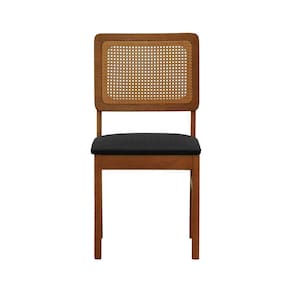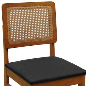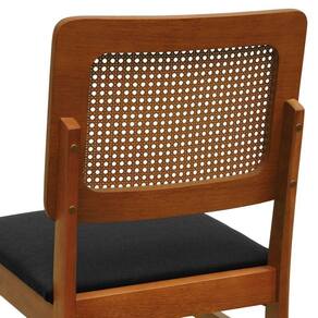 Cadeira Lyon Madeira Maciça Encosto Telinha Amêndoa - Amêndoa Assento Estofado Linho Preto Textura