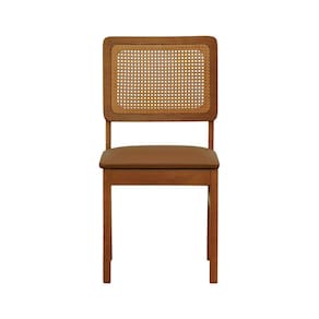 Cadeira Lyon Madeira Maciça Encosto Telinha Amêndoa Assento Estofado Corano Caramelo -