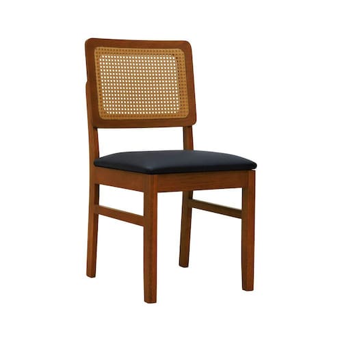 Cadeira Madeira Maciça Lyon Encosto Telinha Amêndoa Assento Estofado Corano Preto -