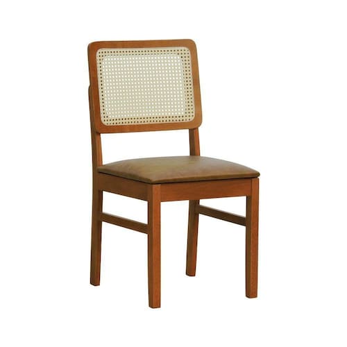 - Materiais: Estrutura em madeira de eucalipto maciço, assento estofado espuma D26 e encosto anatômico com telinha sextavada aplicada.