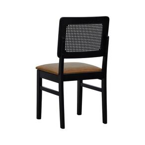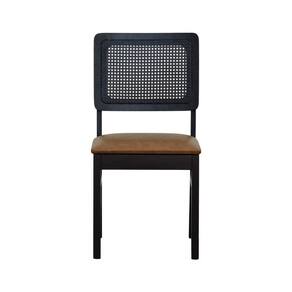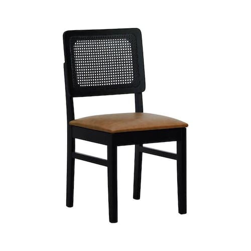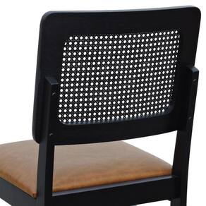 Cadeira Lyon Madeira Maciça Encosto Telinha - Preto Assento Estofado Corano Marrom Mescla