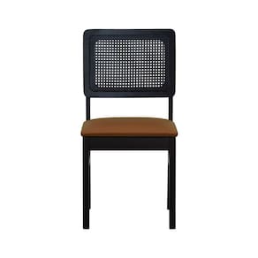 Cadeira Madeira Maciça Lyon Encosto Telinha - Preto Assento Estofado Corano Caramelo -