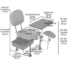 Modelo: Cadeira Manicure Cirandinha Apoio Gaveta e Rodinhas For-ty