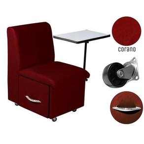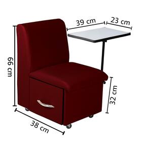 Nosso produto O material do tecido é em corano para que o cliente tenha facilidade com relação a limpeza, como também um tecido de alta durabilidade. A mesa do produto feito em MDF com um lindo revestimento, permitindo assim um contraste nas core. Ela tambem permite a regulagem para o conforto de quem utiliza, sendo o a prestador a de serviço, como também para o a cliente. A Gaveta feita toda em MDF, com um fino acabamento e finalizada com um puxador cromado, para que o produto seja tanto bonito como eficiente. Os Rodízios do produto Rodinhas são feitas de nylon para que utilização e adaptação em qualquer tipo de piso sem riscar.