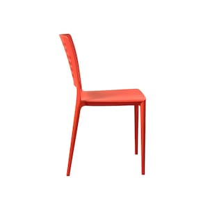 Leve, resistente e fácil de limpar, é um produto versátil, funcional e de grande durabilidade. Suas dimensões são 41,4 cm de largura, 47,8 cm de profundidade e 83,9 cm de altura, com altura do assento de 45,5 cm em relação ao chão.A Cadeira Marte Vermelho Pastel Empilhável em Polipropileno Acrilys é a solução perfeita para quem deseja qualidade, segurança, elegância e praticidade em uma única cadeira.