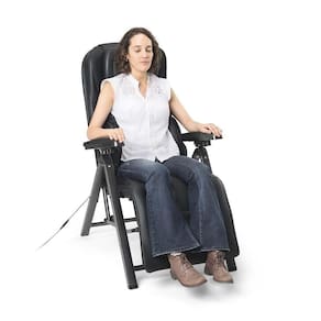Cadeira de Massagem de couro doblavel com funcao de aquecimento, vibracao e com 4 pontos de massagem para as costas, 2 pontos de massagem para o pescoco e ombros e 3 pontos de masasgem por compressao de ar no assento.
