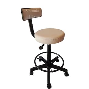 Cadeira mocho caixa alta podologo com aro e base de rodízio para recpçao balcao mercado corano branco Cadeira secretária Mocho podóloga - com regulagem de altura a gás - estrela de ferro com rodízios - madeira