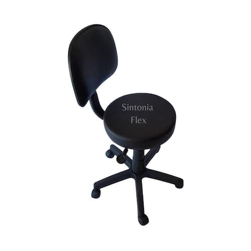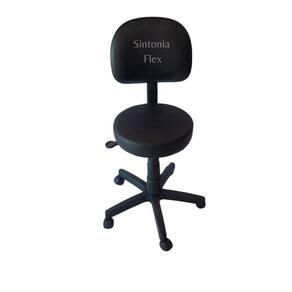 Cadeira mocho - encosto secretaria - bordas em pvc flexivel - madeira reflorestada - espuma anatômica - base com rodízio - regulagem de altura a gás - ideal para dentista tatuador - estrutura em aço com pvc - pintura eletrostática Atura mínima: 41 cm Altura máxima: 56 cm (medidas do chão ao assento) Marca: Sintonia Flex