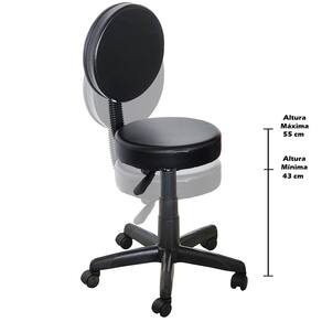 Cadeira Mocho giratório com encosto e regulagem altura Preto