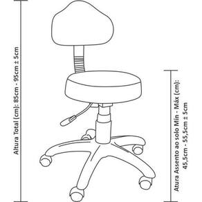 Cadeira Mocho Preto - Ultra Móveis Atenção Considerar o prazo informado de entrega ao prazo de fabricação e despacho da mercadoria quando houver Cadeira mocho O mocho com encosto possui regulagem de altura e encosto o que proporciona maior conforto e ainda fazendo com o usuário fique posicionado ergonomicamente correto, para desempenhar suas atividades. Conta com uma base giratória e banco estofado em viena sintético. É ideal para clínicas, hospitais e consultórios médicos, de fisioterapia, estética, odontologia, dentre outros. Peso real suportado kg : 110kg Estrutura - giratória: sim Material assento/encosto: viena sintético Espessura assento cm : 8,5cm ± 1cm Espessura encosto cm : 3,5cm ± 1cm Diâmetro assento cm : 36cm ± 1cm Altura encosto cm : 24cm ± 1cm Largura encosto cm : 36cm ± 1cm Densidade espuma: d45 Estrutura - regulagem de altura a gás: sim Atura assento ao solo mín - máx cm : 45,5cm - 55,5cm ± 5cm Altura total cm : 85cm - 95cm ± 5cm Largura total cm : 59cm ± 3cm Profundidade total cm : 59cm ± 3cm Regulagem de inclinação do encosto: não Regulagem de altura encosto: não Com rodízio: sim Com sapata: não Com aro apoio de pé : não Braços: não Imagens ilustrativas. As tonalidades de cores dos produtos podem variar das visualizadas em monitores e impressos em geral. Garantia: 90 dias de acordo com o artigo 26 do código de defesa do consumidor