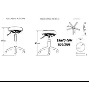 Dimensões do Produto: L x P - 55 x 65 cm Altura Máxima do Assento ao piso: 52 cm Altura Mínima do Assento ao piso: 42 cm