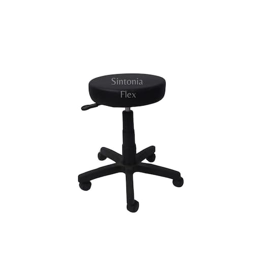 Cadeira Mocho sem encosto com regulagem de altura com rodízio corano preto Cadeira secretária Mocho podóloga - com regulagem de altura a gás - estrela de ferro com rodízios - madeira