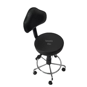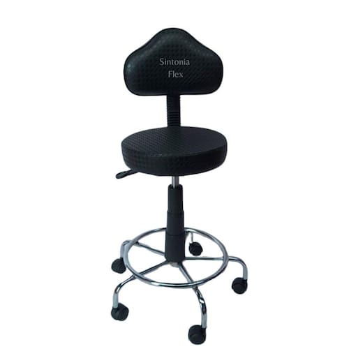 Cadeira secretaria mocho podóloga estética - regulagem de altura a gás - espuma injetada , revestida em corano cipatex - bordas em pvc flexivel - estrela de ferro com rodízios - apoio para os pés altura do chão ao assento máximo 53cm mínimo 43cm Marca: Sintonia Flex