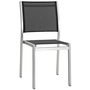 Modway Shore Cadeira lateral de malha de alumínio para pátio ao ar livre com detalhes em prata preta