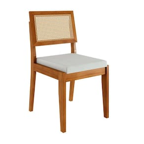 A Cadeira RAINHA possui estrutura em madeira maciça que oferece resistência e segurança durante o uso e um conforto extraordinário no assento com espuma e tecido de extrema qualidade para proporcionar as melhores sensações de conforto no uso. O encosto ainda traz um quadro de rattan deixando sua cadeira sofisticada e contemporânea.