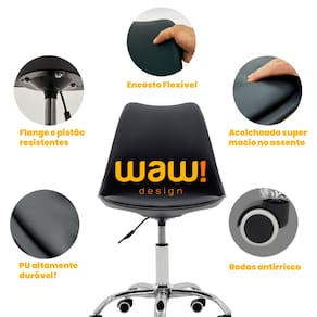 A Cadeira Saarinen é a escolha certa para quem busca conforto e elegância em ambientes como escritórios, mesas de estudo, home office e muito mais. A praticidade também é um destaque com uma altura total mínima de 80cm e máxima de 94cm, largura de 47cm e uma profundidade de 54cm, além disso este modelo possui altura ajustável, com um mínimo de 46cm chegando ao máximo de 60cm do assento ao chão, garantindo uma regulagem personalizada de acordo com a necessidade de cada ambiente ou pessoa. A base giratória com rodízios facilita a mobilidade e proporciona maior agilidade no dia a dia, além disso tem uma boa resistência, com capacidade de suportar até 120kg. Além de funcional, a Cadeira Saarinen Office se destaca pelo design moderno e sofisticado, combinando com diversos estilos de decoração corporativa ou residencial. Características Técnicas e Dimensões: Assento: Polipropileno com assento em PU Base: Aço Cromado Largura: 48cm Profundidade: 52cm Altura total: Alta: 94cm Baixa: 80cm Altura do chão até o assento: Alta: 60cm Baixa: 46cm Medida Interna do Assento: Profundidade: 41cm Largura: 48cm Peso Suportado: 120 kg Destaques do Produto: Base aço cromado Fácil de mover Ideal para ambientes modernos e minimalistas Garantia de 90 dias