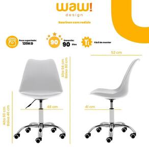 Cadeira office giratória saarinen com altura ajustável para Cor branco Material aço Itempackagequantity 1 Colormap branco Basematerialtype aço Mfrpartnumber 1219br Cor branco Color branco Montagem sim, instalação dos pés Altura sem embalagem 94 Largura sem embalagem 48 Comprimento sem embalagem 52 Peso sem embalagem 5 Cuidados limpar com pano úmido Conteúdo da embalagem 1 cadeira Tamanho único A cadeira saarinen é a escolha certa para quem busca conforto e elegância em ambientes como escritórios, mesas de estudo, home office e muito mais. a praticidade também é um destaque com uma altura total mínima de 80cm e máxima de 94cm, largura de 47cm e uma profundidade de 54cm, além disso este modelo possui altura ajustável, com um mínimo de 46cm chegando ao máximo de 60cm do assento ao chão, garantindo uma regulagem personalizada de acordo com a necessidade de cada ambiente ou pessoa. A base giratória com rodízios facilita a mobilidade e proporciona maior agilidade no dia a dia, além disso tem uma boa resistência, com capacidade de suportar até 120kg. além de funcional, a cadeira saarinen office se destaca pelo design moderno e sofisticado, combinando com diversos estilos de decoração corporativa ou residencial. características técnicas e dimensões: assento: polipropileno com assento em pu base: aço cromado largura: 48cm profundidade: 52cm altura total: alta: 94cm baixa: 80cm altura do chão até o assento: alta: 60cm baixa: 46cm medida interna do assento: profundidade: 41cm largura: 48cm peso suportado: 120 kg destaques do produto: base aço cromado fácil de mover ideal para ambientes modernos e minimalistas de 90 dias Marca: Não Informado