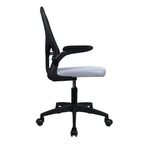 Material: Tela Mesh Cor da estrutura: Preto Cor do encosto: Preto Cor do assento: Cinza Tipo de apoio de braço: Ajustável Material apoio de braço: Plástico c/ almofada Material da base: Nylon Material das rodas: Nylon