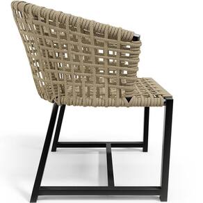 A Cadeira Belize possui um design artesanal lindo e inovador para uso nas áreas de lazer externo, deixando o ambiente ainda mais valorizado. Trabalhada em um excelente material de alumínio na estrutura, com um lindo desenho confeccionado com cordas náuticas que é um material extremamente elegante e essencial para uma boa manutenção duradoura e longínqua do móvel, Pode ser usada perto da piscina, no jardim, sala de estar, varanda e onde mais sua criatividade desejar! Adquira já a sua! Dimensões do Produto (L x A x P) 49,5 x 78 x 52,5 cm Medidas Internas: Altura do assento: 45 cm Altura do chão ao braço: 62 cm Largura do assento: 50 cm Profundidade do assento: 52 cm Características: Estrutura em alumínio. Acabamento em pintura eletrostática a pó na cor Preto, de alta resistência, sendo indicado também para áreas litorâneas. Cordas náuticas produzida com fios de polipropileno na cor Bege. Ponteiras em polietileno injetadas com borda interna para evitar acúmulo de água. Espessura da estrutura: 1,6 mm Suporta até 115 kg. - A tonalidade do produto real poderá ter ligeira variação devido o lote de tecidos. - A limpeza deve ser feita com pano levemente umedecido em água limpa, sem esfregar, não utilizar produtos abrasivos, desengordurantes, álcool ou solvente. - O produto tem aditivo anti enxofre que o torna mais resistente, mas não é recomendada a exposição por tempo indefinido ao sol, chuva, sereno e maresia. - A exposição prolongada ao sol ou maresia, pode causar desbotamento precoce da corda náutica. Observações importantes: - Produto para uso em ambiente interno e externo, não devendo ficar exposto diretamente ao sol, calor e umidade excessivos. - Pode haver alguma diferença de tonalidade entre a imagem e o produto real, por conta do tratamento de imagens e a calibração de cores do seu monitor. - As imagens são meramente ilustrativas, não acompanham objetos de decoração e eletrônicos. - Ao receber a mercadoria, o cliente deve verificar as condições da embalagem, caso haja alguma não assine o de . - Montagem, desmontagem e outras instalações serão de responsabilidade do cliente. Não nos responsabilizamos, no ato da , por subir escadas/elevadores ou pelo por guincho em apartamentos. Eventuais despesas são de responsabilidade do comprador. - Confira as dimensões do produto e certifique-se de que passará normalmente por supostos elevadores, portas, escadas e/ou corredores de sua residência. NA