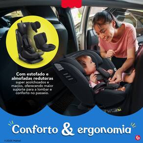 Funcionalidades Extras: - Rotação 360° para facilitar o acesso à criança - Liberação temporária do Top Tether para giro completo - Capa removível e lavável - Instalação simples e firme, com veículos com ISOFIX