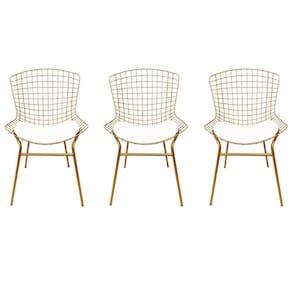 A Cadeira Bertoia Tubular é um produto de alta qualidade e possui um design clássico que certamente será o destaque da sua cozinha ou área gourmet. Com uma estrutura em pintura eletrostática epóxi cor dourado fosco, assento em e.v.a revestido com material sintético cor branco e concha fabricada em ferro maciço, essa cadeira é resistente e durável. Além disso, seus pés são produzidos em tubo 5/8" reforçado, garantindo ainda mais estabilidade e segurança para seus usuários.
