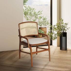 AS IMAGENS SÃO MERAMENTE ILUSTRATIVAS E PODEM SOFRER VARIAÇÕES DE COR E PEQUENOS DETALHES DE ACORDO COM O SEU MONITOR, ILUMINAÇÃO DO AMBIENTE E ATÉ MESMO A SUA PERCEPÇÃO VISUAL.Cadeira para Cozinha FlorenÃa Madeira Jequitibà Terra - com BraÃo Linho Bege e Encosto de Palha