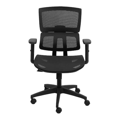 Assento e encosto em tela (mesh): proporciona ventilação, conforto térmico e leveza ao visual.