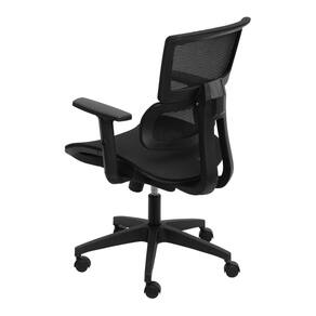 Cadeira Genebra com assento em tela e encosto em tela. Espaldar flexível e base giratória preta com relax.