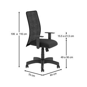 Base giratória cromada com relax e regulagem de altura com sistema a gás. Assento em tecido Space e encostos em tela super resistente preta Base e braço cromados.