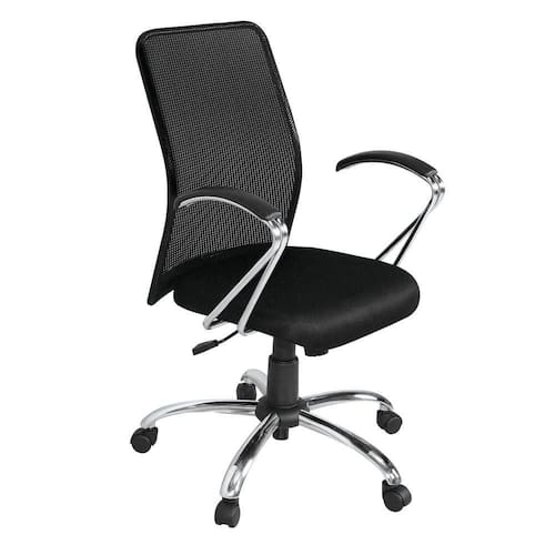 Base giratória cromada com relax e regulagem de altura com sistema a gás. Assento em tecido Space e encostos em tela super resistente preta Base e braço cromados.