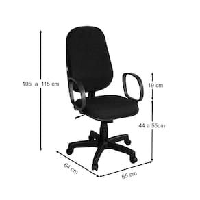 Base giratória com relax e regulagem de altura com sistema a gás. Assento e encosto injetado e anatômico e tapeçado em tecido J. Serrano. Base e Braço na cor preta.