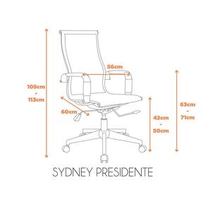 A cadeira Sydney Presidente é toda em tela com aço cromado. A tela garante resistência e conforto para quem estiver usando, além de também possuir seus braços revestidos, para que a pele não entre em contato com o metal direto. Ela possui um assento alongado, o que a torna perfeita para salas de diretoria e mesas de reunião, além de possuir o sistema relax para que seja melhor para seus usuários, travando na vertical, ou balançando de acordo com o movimento do corpo. Escala de Brilho: Fosco Produto Montado: Sim Acabamento da Estrutura: Não se Aplica Altura do assento até o chão: 50.0000 Ambiente Principal: Escritório Braço com Ajuste de Altura: Não codigo_ean: 7909903202760 Complexidade da Montagem: Baixa: pode ser montado por uma pessoa sozinha Cor: Cinza Dobrável: Não Empilhável: Não Encosto Reclinável: Sim Estrutura do Assento: Aço Estrutura do Encosto: Aço Giratória: Sim Linha ou Coleção: Sydney Presidente Manual de Montagem e Instalação: https://product-hub-prd.madeiramadeira.com.br/816447/documents/65d63738-bf59-4e0f-a77b-d7e6fcc50457sidentediretorref230ref231.pdf Material da Base: Aço Necessita Montagem: Sim Origem do Produto: Importado Peso: 9,47 kg Possui Apoio para Braços: Sim Possui LED: Não Possui Rodízio: Sim Quantidade de Itens: 1 Recomendações de Uso, Manutenção e Limpeza: Utilizar um pano úmido Revestimento do Assento: Tela Revestimento do Encosto: Tela Sistema de Montagem: Concha, Par de Braços, Revestimento dos Braços, Flange, Pistão, Anel, Rodizio, Kit de Parafusos e Chave de Parafusos Suporta Até (kg): 120 kg Tipo de Assento: Regulável