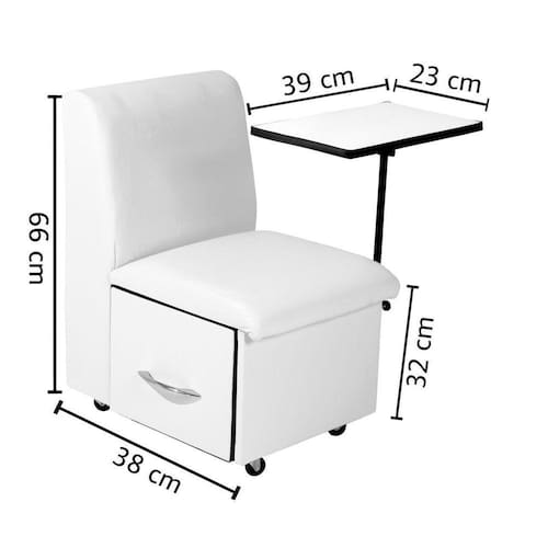 Nosso produtoO material do tecido é em corano para que o cliente tenha facilidade com relação a limpeza, como também um tecido de alta durabilidade. A mesa do produto feito em MDF com um lindo revestimento, permitindo assim um contraste nas core. Ela tambem permite a regulagem para o conforto de quem utiliza, sendo o a prestador a de serviço, como também para o a cliente.A Gaveta feita toda em MDF, com um fino acabamento e finalizada com um puxador cromado, para que o produto seja tanto bonito como eficiente.Os Rodízios do produto Rodinhas são feitas de nylon para que utilização e adaptação em qualquer tipo de piso sem riscar.A qualidade e o design do nosso produto não tem igual. A delicadeza e alta resistencia que somente os moveis Bandoliny possuem. Características:- Material resistente, novo e de alta qualidade- Excelente acabamento- Decoração moderna Especificações técnicasMarca: BandolinyModelo: PremiumCor: Branca FactorMaterial: Corano e SuedeFormato: CirandaDimensões:70 x 45 x 40Peso: 13.00 KgSistema de montagem: Pronta para usoI Marca: Bandoliny