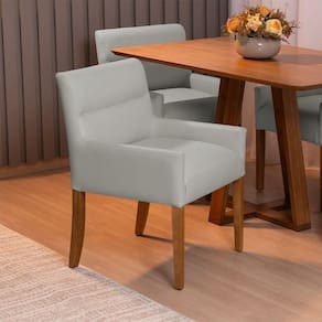 Características Técnicas Estrutura: Madeira reflorestada de eucalipto com reforço em MDF e OSB Assento: Espuma D-28 HR sobre base de madeira conforto e firmeza Encosto e Braça: Espuma D-23 sobre percintas elásticas de nylon ergonomia e apoio na medida Revestimento: Corano visual sofisticado e fácil de manter Pés: Madeira maciça envernizada, modelo fixo Altura dos braços com mesas de jantar padrão praticidade no uso diário Medidas Altura Total: 83 cm Largura: 56 cm Profundidade: 56 cm Peso: 15 kg Altura do Assento ao Chão: 49 cm Largura do Assento: 45 cm Profundidade do Assento: 47 cm Altura dos Pés: 35 cm Altura do Encosto: 36 cm Altura do Braço ao Assento: 11 cm Diferenciais Encosto de braço mais baixo: encaixa perfeitamente sob a mesa Design simples, versátil e elegante Materiais de alta qualidade para maior durabilidade Já vem montada é só desembalar e usar Suporta até 110 kg Cuidados Limpeza com pano levemente umedecido, seguido de pano seco Evitar exposição solar direta por muitas horas Não usar produtos abrasivos, evitar produtos com corantes ou escovas rígidas Garantia3 meses contra de fabricação