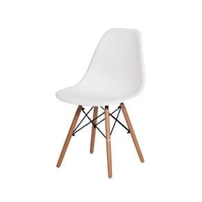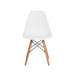 Faixa de Peso Suportado (Kg): 120 | Altura (cm): 82 | Largura (cm): 46 | Material: Polipropileno | Modelo: Eames Eiffel | Pés (Material): Madeira | Peso liq. do produto (Kg): 4 | Profundidade (cm): 54 | Indicação: Cozinha, Escritório, Sala de Jantar | Garantia: 90 dias após o recebimento do produto Cor: Branco